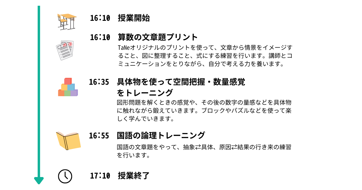 【小学生】TaNeに通ったらどうなる?授業の流れ・1週間の流れを紹介